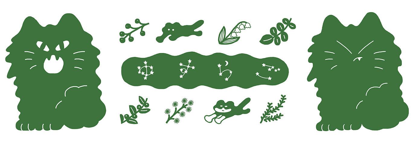 ゆすらごでお馴染みの二匹の猫「ふむふむ&ちゃお」をモデルにしたイラストが駆け回るかわいらしいデザインで普段使いにも最適です。